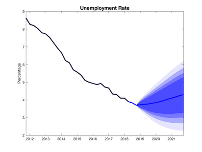 Forecasts Assume Federal Reserve raises the federal funds rate in December 2018 and one time in 2019