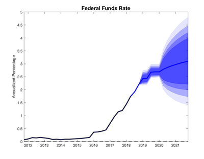 Forecasts Assume Federal Reserve raises the federal funds rate in December 2018 and four times in 2019
